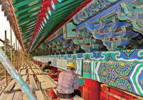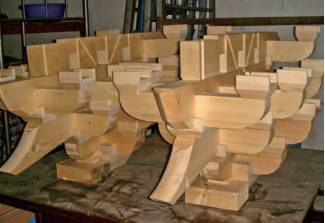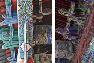 圣得丽古建漆整理: 哲匠之家近期将对古建筑的“斗栱”做系列专题详细讲解,想了解古建筑斗栱知识的哲友们定期阅读哦! 斗栱是安装在古建筑柱头、额枋之上,屋檐檩、椽之下的一个构造层,由多跟纵横交错的构件组成为一组(宋称朵,清称攒);按位置由多组不同种类的斗栱在古建筑柱头、额枋之上,屋檐檩、椽之下相互组合成为一个整体的构造层。这个整体的构造层——斗栱,是我国传统木结构建筑中特有的一种构件。 本文以清五踩昂翘平身科斗拱为例进行讲解 斗栱的构成 斗栱由五部分构成:斗、栱、枋、昂、其他类构件 1.斗是栱枋之间的斗形垫木,起传递荷载及装饰作用,如坐斗、十八斗、槽升子、三才升 2.栱是斗栱中的横向构件,相似人双手托举,起传递荷载及装饰作用,如正心瓜栱、正心万栱、单才瓜栱、单材万栱、厢栱。 3.枋是斗栱中的横向构件,起传递荷载及相关拉结作用,如正心枋、里、外拽架枋、挑檐枋、井口枋。 4.昂是斗栱中的纵向构件,起加大屋檐出挑,传递荷载及装饰作用,如翘、昂、蚂蚱头(耍头)、撑头木、桁椀。 5.其他类构件:包括挑檐桁、正心桁、盖斗板、斜斗板、垫栱板。 清-五踩昂翘平身科斗栱-正立面图 清-五踩昂翘平身科斗栱-侧立面图 清-五踩昂翘平身科斗栱-轴测图 清-五踩昂翘平身科斗栱-斗栱分件 清-五踩昂翘平身科斗栱-斗栱分件-坐斗 清-五踩昂翘平身科斗栱-斗栱分件-三才升 清-五踩昂翘平身科斗栱-斗栱分件-正心瓜栱 清-五踩昂翘平身科斗栱-斗栱分件-正心万栱 清-五踩昂翘平身科斗栱-斗栱分件-昂、耍头、瓜栱、万栱、厢栱 清-五踩昂翘平身科斗栱-斗栱分件-正心瓜栱、正心万栱、单材瓜栱、单材万栱、厢栱 清-五踩昂翘平身科斗栱-斗栱分件-瓜、万、厢栱的区别——“栱瓣”万三、瓜四、厢栱五 清-五踩昂翘平身科斗栱-斗栱分件-纵向构件 清-五踩昂翘平身科斗栱-组装图 清-五踩昂翘平身科斗栱-斗栱组装中 斗栱的功能与作用 斗栱的作用: 1.具有承上启下,传递荷载的作用; 2.用于建筑物屋檐下,向外出挑,出檐对于保护建筑物的柱基、墙身、台明等免受雨水侵蚀的作用; 3.缩短梁枋净跨度,分散梁枋节点处剪力。 4.榫卯结构,利于抗震; 5.装饰作用; 6.显示建筑物等级的作用。 承上启下,传递荷载 ![]() ![]() 屋檐出挑—防止雨水侵蚀 ![]() ![]() ![]() ![]() 缩短梁枋净跨度,分散梁枋节点处剪力 ![]() 榫卯结构,利于抗震 ![]() ![]() 装饰作用 ![]() 唐宋时期的斗栱 ![]() ![]() 唐宋时期的斗栱 ![]() ![]() 辽金时期的斗栱 ![]() ![]() 辽金时期的斗栱 ![]() ![]() 宋、金、元时期的斗栱 ![]() ![]() 宋、金、元时期的斗栱 ![]() ![]() 明、清时期的斗栱 ![]() ![]() 明、清时期的斗栱 ![]() 彰显建筑等级 ![]() ![]() 北京现存明、清建筑中等级最高的两座建筑之一的太庙-亨殿 ![]() ![]() 太庙亨殿下檐:单翘重昂七踩斗栱 ![]() ![]() 太庙亨殿上檐:重翘重昂九踩斗栱 ![]() ![]() ![]() 太庙“亨殿”西配殿:重翘五踩斗栱 ![]() ![]() ![]() 大门:单昂三踩斗栱(后尾变通作法) ![]() ![]() ![]() 一斗三升不出踩斗栱 ![]() 通过以上反映出斗栱作为建筑构件的传递荷载、加大屋檐出挑、缩短梁枋跨度、吸收纵横震波、美化立面造型、和彰显建筑等级六大作用,同时,也说明斗栱是一个在建筑中既起着结构作用又起着装饰作用的建筑构件。 下一篇: 古建文化|周家大院